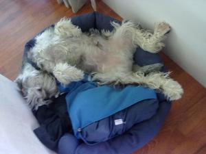 Fór með hann Fróða minn í það sem átti að vera rólegt þriðjudagsskokk í Tapering.  Ég var ekki með púlsmælinn á mér þannig að kannski hef ég gefið aðeins of mikið inn en mikið óskaplega var hundurinn þreyttur á eftir.  Kannski er svona erfitt fyrir hann að hlaupa í einhvern tíma í ól í stað þess að fá að gormast um sjálfur.  Á morgun eru 15 mínutur af öllum þremur greinum.  Þetta á að vera svo maður haldi spennunni.  Ég held að ég þurfi ekkert að gabba mig neitt til þess.   Spennan er mikil hjá mér, mig langar verulega að standa mig vel enda hef ég æft verulega vel.