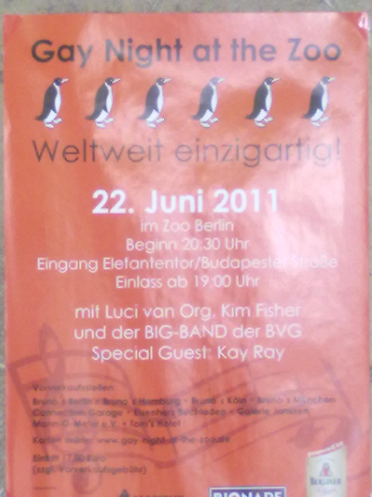 Hvað fer fram á Gay kvöldi í dýragarði?  Þegar ég var í Berlin um daginn renndi ég mér í dýragarðinn.  Þá um kvöldið átti að vera sérlegt kynvillukvöld í garðinum og var allt að fyllast af svona líka ljómandi hommum.  Minna bara á lessunum enda hommarnir afskaplega áberandi í sínum hommaskap.  Það er ábyggilega nokkuð sérstakt að vera við svona “Show” en við bræður treystum okkur ekki til þess.  Kom þar helst til þýskukunnáttuleysi okkar bræðra.